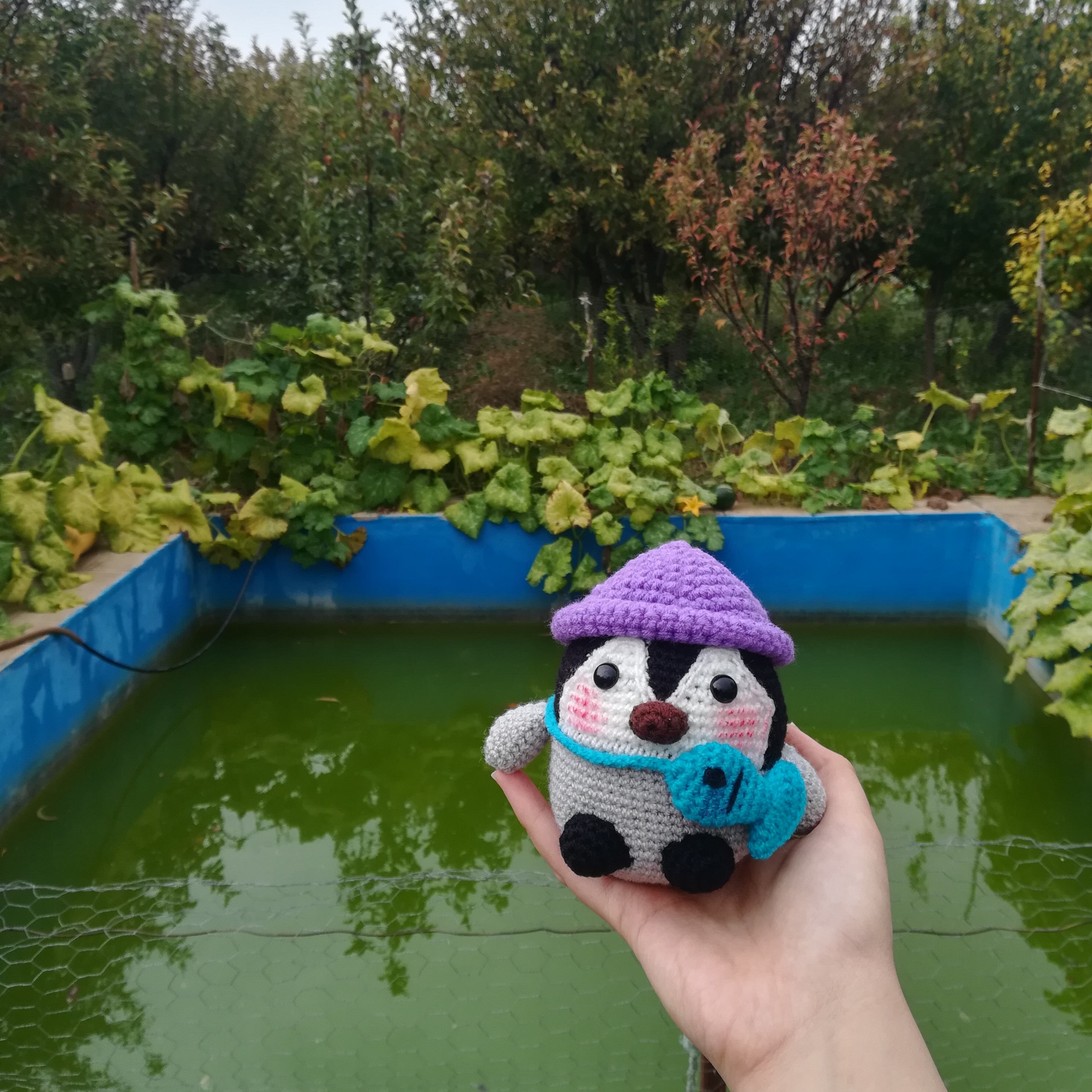 عروسک بافتنی پنگوئن کوچولوی سرمایی 🐧 این پنگوئن قلقلی و ریزه میزه چند لاخ مو هم رو کله اش داره که خیلی گوگولیش کرده. یه کلاه🪖بافتنی با یه کیف 👜 داره که شبیه ماهی🐟 هستش. اگه سایز یا رنگ دیگه ای برای کلاه و کیفش مد نظرتونه خوشحال میشم باهام در میون بذارید😊🌱