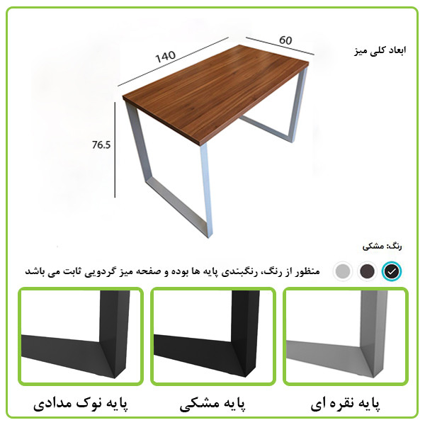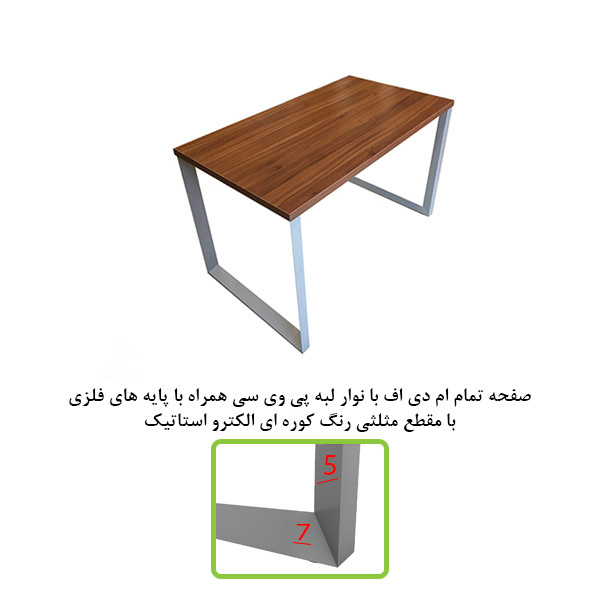 میز مدرن از سری تولیدات کاربردی این شرکت بوده که می تواند کاربردهای زیادی داشته باشد. این محصول با ساختار مینیمال و زیبایی که دارد می تواند به عنوان میز اداری، میز کارشناسی، میز ت، میز کامپیوتر، میز کار و بسیاری از موارد دیگر کاربرد داشته باشد. ساختار فلزی پایه ها باعث استحکام بیشتر این مدل میز شده و صفحه رویی تمام MDF میز کیفیت را به ارمغان می آورد. یکی از مزیت های این میز قابلیت مونتاژ و دمونتاژ شدن ان می باشد. طوری که شما به راحتی و تنها با باز و بسته کردن چند عدد پیچ، این کار را به انی انجام دهید رنگ صفحه این محصول گردویی با ضخامت 16 میل بوده و رنگ پایه ها متغییر می باشد.
