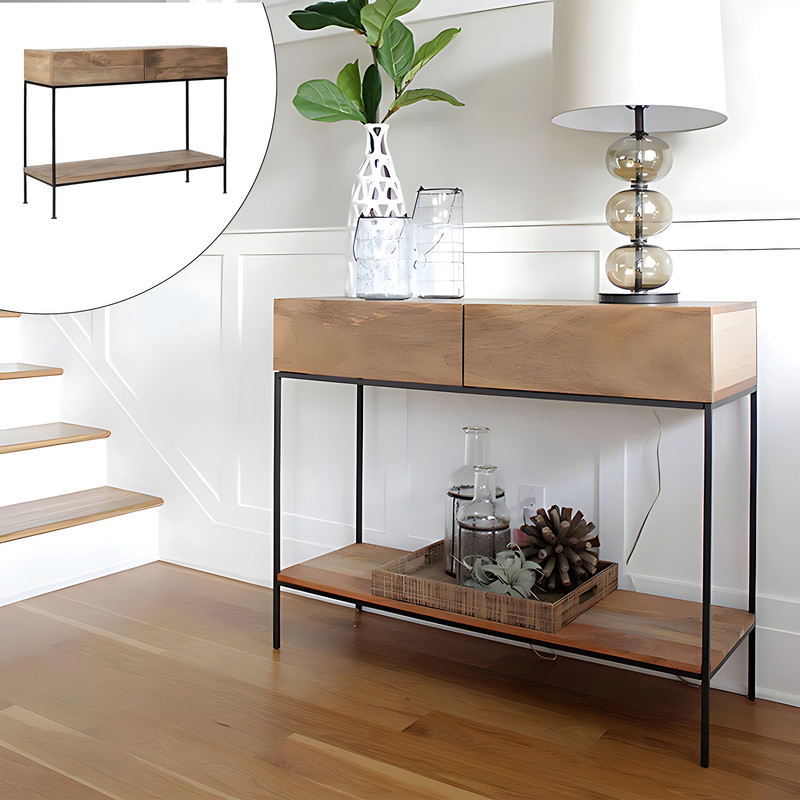لطفا دقت فرمایید: ، طراح و تولید کننده اصلی این محصول با نام تجاری است. این محصول دارای لیبل می باشد. لطفا قبل از خرید نام فروشنده را بررسی فرمایید. کنسول مدل B113 با ظاهری ساده و زیبا، مناسب دکوراسیون منزل یا اداری با طراحی مدرن است. کنسول مدل B113 دارای دو کشو، یک طبقه با پایه های فلزی بوده و ترکیب رنگی متنوعی دارد. ابعاد: طول 100 سانتی متر - عرض 35 سانتی متر - ارتفاع 120 سانتی متر جنس محصول ملامینه می باشد.