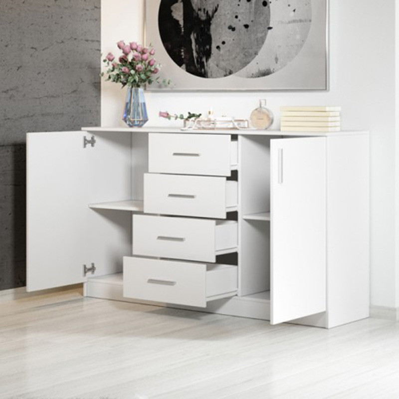 لطفا دقت فرمایید: ، طراح و تولید کننده اصلی این محصول با نام تجاری است. این محصول دارای لیبل می باشد. لطفا قبل از خرید نام فروشنده را بررسی فرمایید. کنسول مدل B168 با ظاهری ساده و زیبا، مناسب دکوراسیون منزل یا اداری با طراحی مدرن است. کنسول مدل B168 دارای 2 درب و 4 کشو میباشد. ابعاد: طول 145 سانتی متر - عرض 45 سانتی متر - ارتفاع 95 سانتی متر جنس محصول ملامینه می باشد.