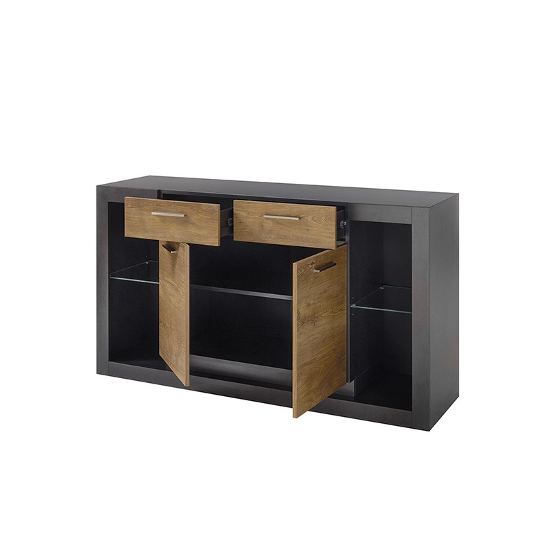 لطفا دقت فرمایید: ، طراح و تولید کننده اصلی این محصول با نام تجاری است. این محصول دارای لیبل می باشد. لطفا قبل از خرید نام فروشنده را بررسی فرمایید. کنسول مدل B169 با ظاهری ساده و زیبا، مناسب دکوراسیون منزل یا اداری با طراحی مدرن است. کنسول مدل B169 دارای 2 درب، 2 کشو و 4 قفسه شیشه ای میباشد. ابعاد: طول 150 سانتی متر - عرض 42 سانتی متر - ارتفاع 85 سانتی متر جنس محصول ملامینه می باشد.