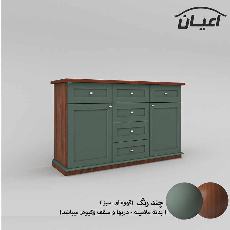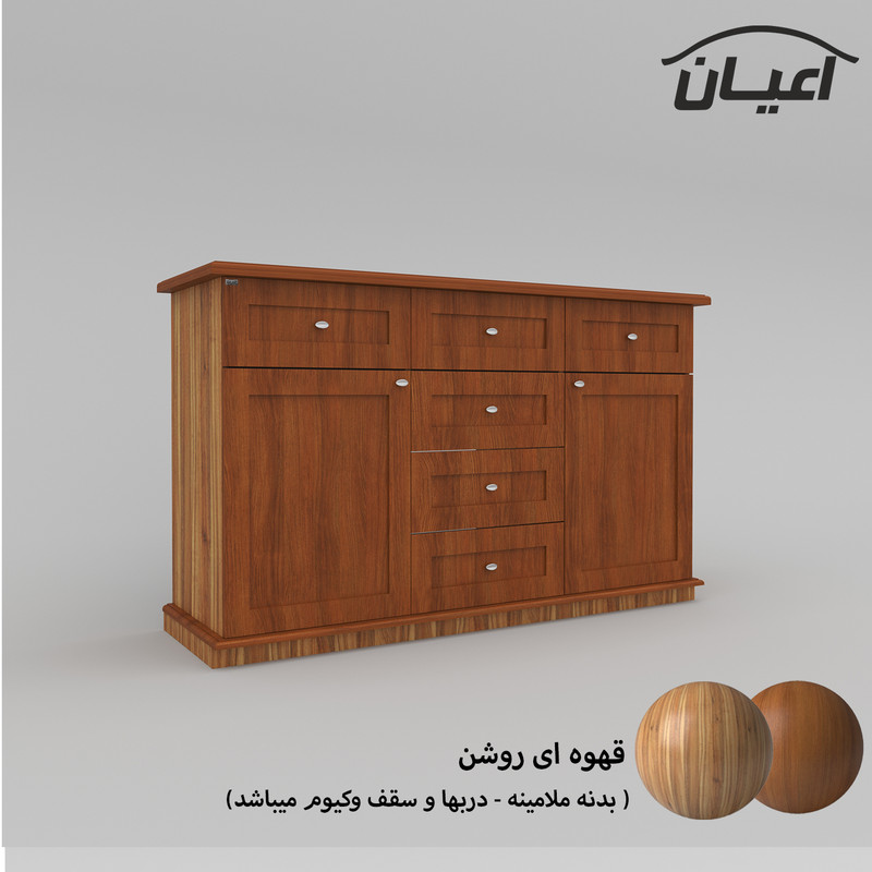 میز کنسول .جنس نئوپان ملامینه شرکتی و ام دی اف با روکش وکیوم.دارای دو فضای کمدی.درب ها به صورت می باشد.دارای شش کشو با ریل سه تکه.طراحی نئوکلاسیک.بسته بندی کالا به صورت تک آیتمی است.ال در بسته بندی با لوگوی برند انجام می شود. این کالا توسط برند در رنگ های سفید/مشکی/قهوه ای/گردویی/قهوه ای روشن/قهوه ای تیره(ونگه) /طوسی و حالت چندرنگ (سبز و قهوه ای)تولید می شود.رنگ بندی این کالا در آ قابل مشاهده است. تنها در صورتی این محصول مطابق مشخصات خواهد بود که هنگام انتخاب، فروشنده ی رسمی برند که با تیک آبی مشخص شده است را انتخاب نمایید.