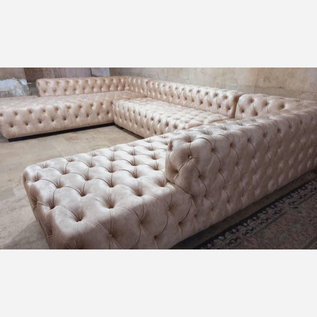 👆مبل ال 7 نفره چستر به همراه میز وسط جنس : پارچه خارجی ، فوم سرد ، چوب روس رنگبندی چوب و پارچه به سلیقه مشتری ارسال به سراسر کشور از طریق باربری بیمه شده قبل از خرید استعلام بگیرید و کد تخفیف دریافت نمایید . دارای کد تخفیف هزینه ارسال