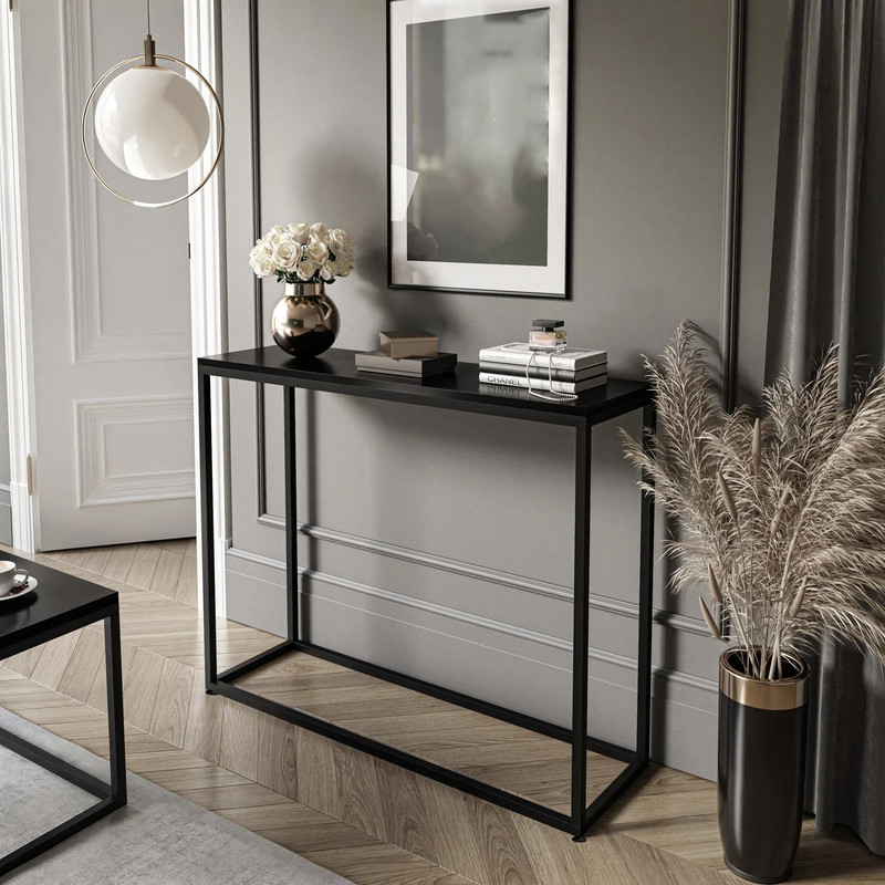 کنسول DZom مدل CNL_K100_100_B محصولی سبک، شیک و در عین حال جذاب و کارآمد از سری تولیدات میباشد. این محصول از پایه های فلزی با مقطع 20x20 میلیمتر و رنگ رویه الکترو با ی و دوام بالا ساخته شده است. همچنین پایه های پیچی، قابلیت تنظیم نسبت به سطح زمین را دارد تا بهترین تراز جهت جلوگیری از تکان خوردن را ایجاد نماید. صفحه محصول از جنس MDF درجه یک برجسته طرح چوب و به رنگ مشکی می باشد. این محصول با طول 100cm، عرض 30cm و ارتفاع 75cmعرضه می شود. به این نکته توجه شود که تنوع رنگ انتخابی کالا تنها مربوط به رنگ پایه های فلزی میباشد و محصول به صورت کاملا مونتاژ شده و آماده استفاده برای مشتریان ال می گردد