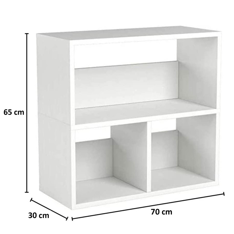 کتابخانه مدل IKE4413 دارای سه طبقه قفسه ای و لبه ها PVC و جنس روکش از ملامینه ضد خش میباشد و همچنین استحکام این کتابخانه جهت کالاهای دکوراتیو و کتاب مناسب است.