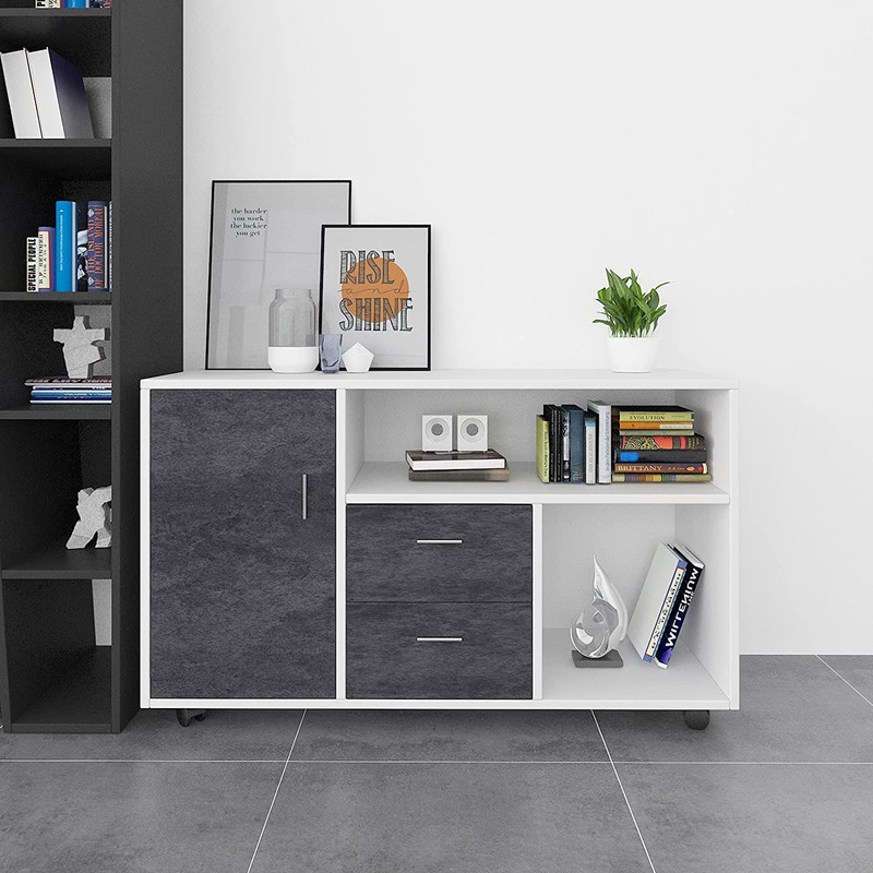 کتابخانه مدل IKE4470 جنس روکش از ملامینه میباشد و دارای دو عدد کشو با ریل ساچمه ای با کیفیت و درب با لولای با کیفیت و دارای چهار عدد چرخ ترمز دار مقاوم و این کالا از استحکام و مقاومت بالایی برخوردار است.