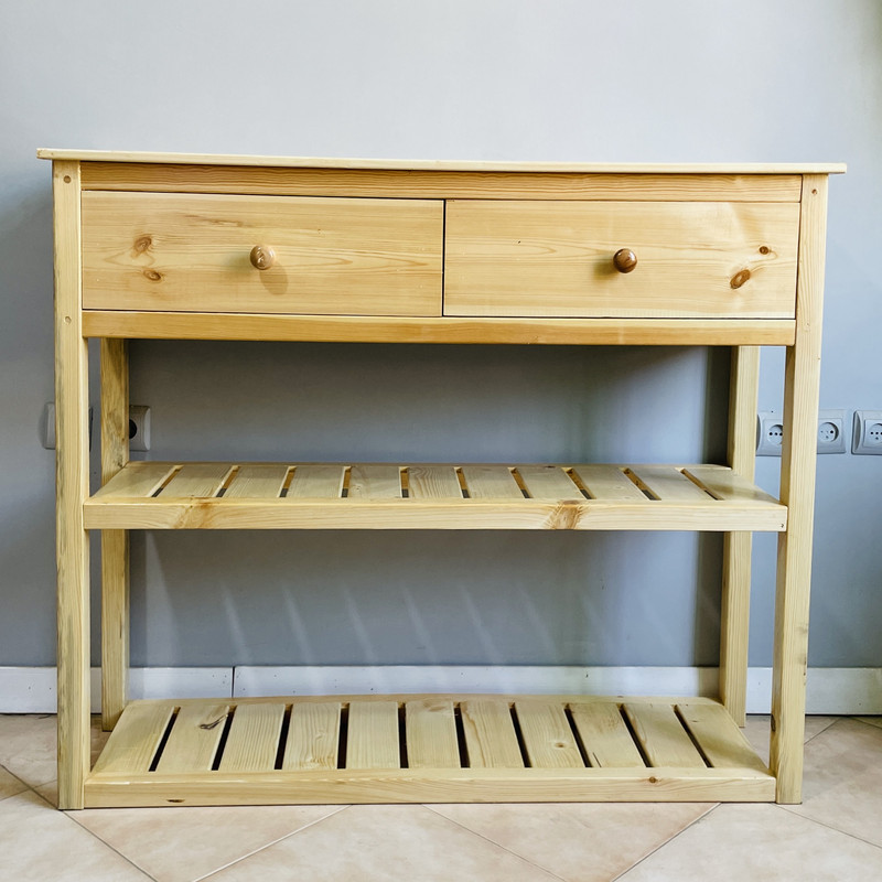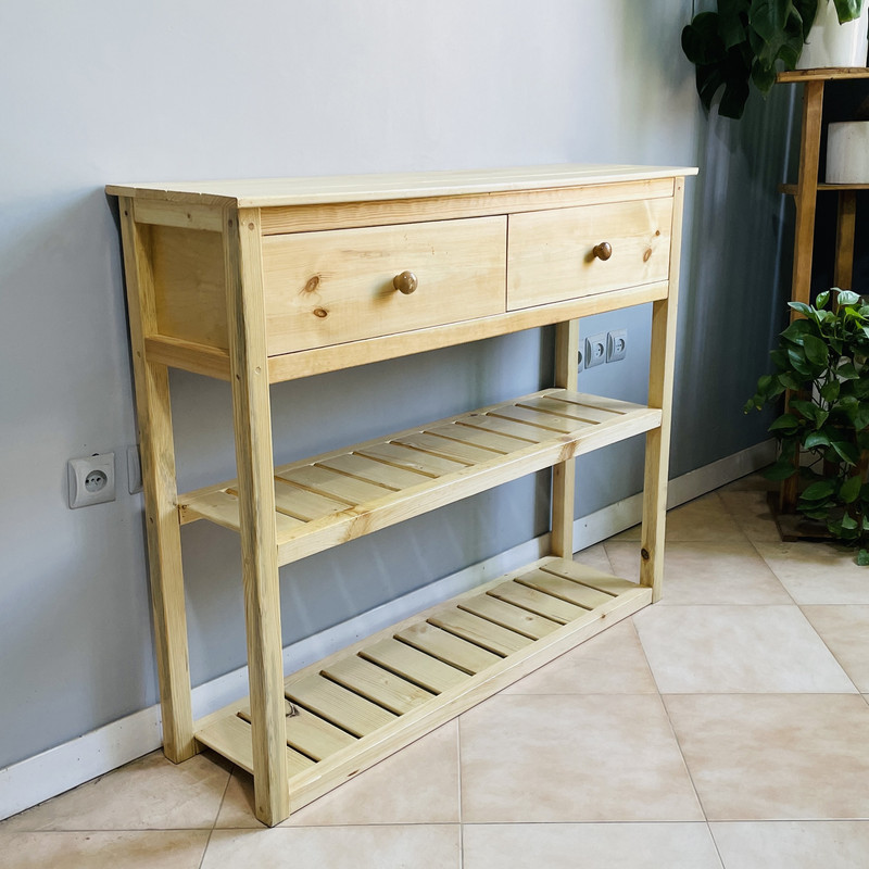 میز کنسول چوبی مدل JB500 دارای دو کشو از جنس تمام چوب روسی می باشد. سنباده کاری عالی و اجرای لایه کیلر براق کننده از ویژگی های این محصول می باشد . مدل بی رنگ این محصول فاقد هرگونه رنگ و جلایی می باشد و مناسب برای افی که می خواهند رنگ دلخواه خود را اجرا کنند می باشد.