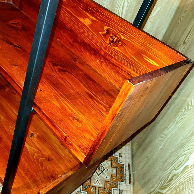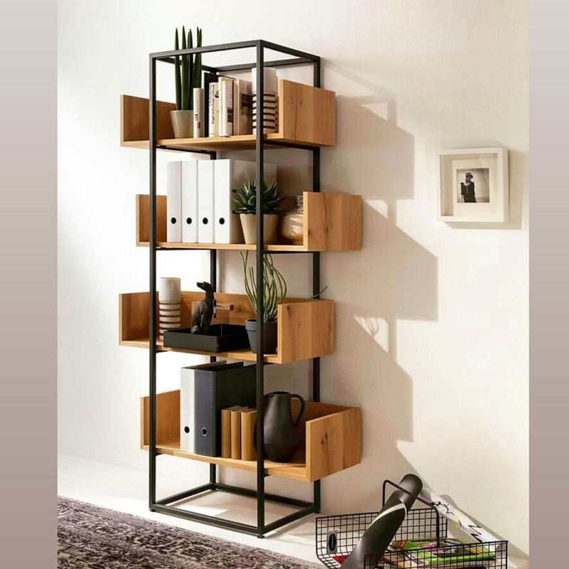 با توجه ب نیاز مشتریان و زیبای ترکیب چند متریال اقدام به ساخت اع کتابخانه ها و اع لوازم اداری و خانگی با ترکیب اع متریال از جمله چوب فلز و شیشه کرده است که در این مدل از کتابخانه از فلز سبک مبلی و چوب طبیعی روس استفاده شده و زیبای خاصی با این متریال ها بوجود آمده است رنگ مورد استفاده در فلز مشکی مات پودری (کوره ای)میباشد.