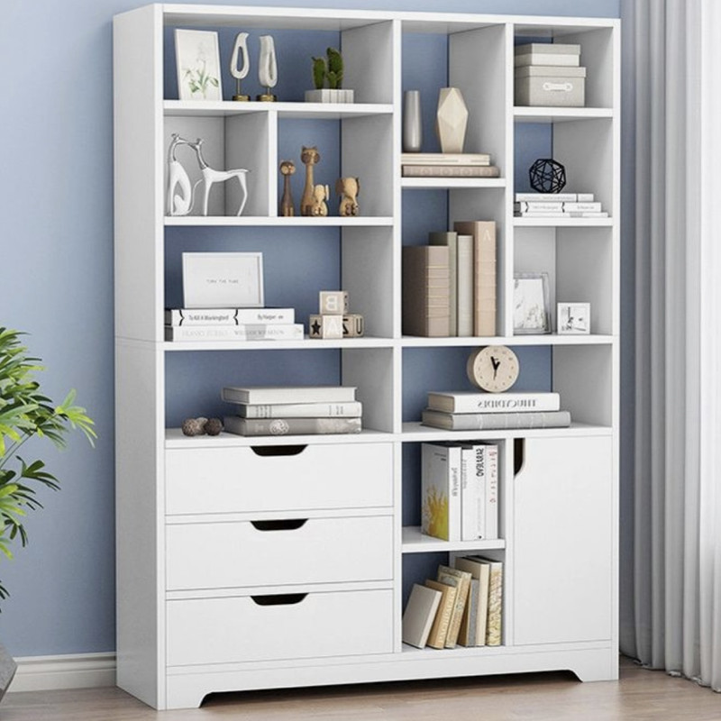 کتابخانه ی کمد و کشو دار بسیار کاربردی در ابعاد 150x100x27 و در رنگ های سفید مشکی قهوهای کرم به فروش میرسد. جنس این کتابخانه لترون روکش ملامینه ضد خش درجه یک میباشد