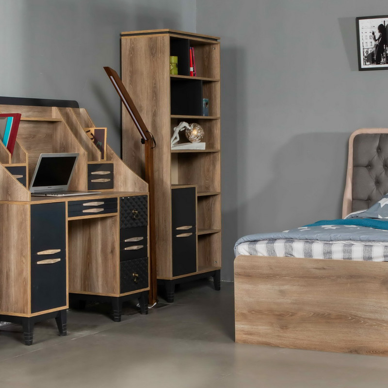 کتابخانه مدل پارمین، یک محصول بسیار خوش ساخت و با کیفیت می باشد، که اتاق فرزند شما را تکمیل و زیبا می کند. این کتابخانه از بهترین و با کیفیت ترین مواد اولیه تولید شده است که باعث میشود استقامت و طول عمر بسیار زیادی داشته باشد. این کتابخانه دارای هشت قفسه مجزا و یک کمد درب دار و طبقه بندی شده نیز می باشد. متریال تشکیل دهنده کتابخانه پارمین عبارت است از: ام دی اف واناچای تایلند، چوب راش گرجستان، رنگ پلی اورتان والرسا اسپانیا، ریل و یراق آلات وارداتی، اتصالات . کتابخانه پارمین یکی از اجزای سرویس کامل نوجوان پارمین می باشد که دیگر اجزای آن مثل میز تحریر، دراور چهر کشو تخت خواب نوجوان و... در سایت دیجیکالا موجود می باشد.