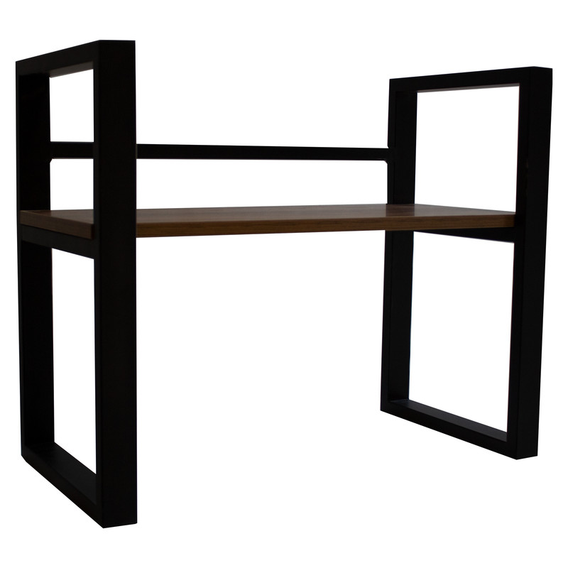 کتابخانه مدل رومیزی کد IKE435 تلفیقی از چوب و فلز جنس روکش از ملامینه ضد خش میباشد و دارای فلز مستحکم رنگ مشکی کوره ای و در رنگ های زیبا و شکیل گردویی و طلایی و سفید میباشد .