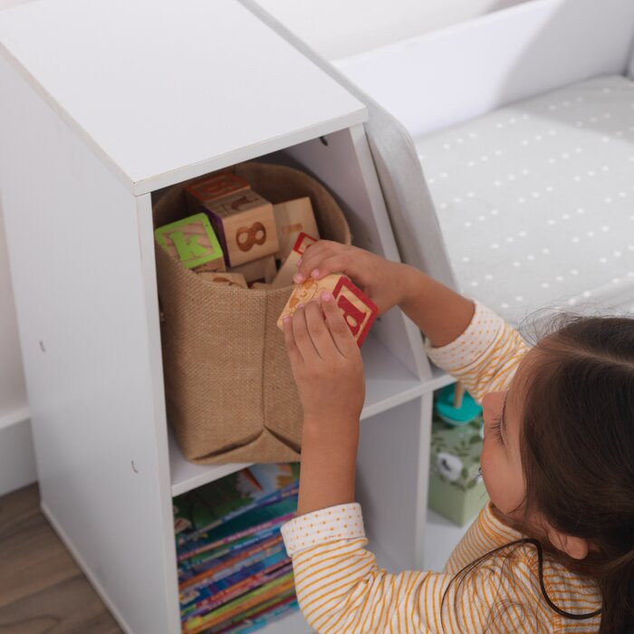 قفسه کتاب KidKraft با گوشه ای برای مطالعه به دلیل طراحی هوشمندانه ، ساختار محکم و جذابیت و زیبایی ، مورد علاقه والدین است. ترکیب یک قسمت نشیمن با بالشتک با قفسه های کتاب، دو فضا را در یک قطعه مبلمان به شما می دهد. بچهها میتوانند کتابها، اسباببازیها، پتوها و موارد دیگر را در شش قفسه ذخیره کنند، سپس برای خواندن یا استراحت در قسمت میانی زاویهدار سهطرفه جمع شوند. دو قفسه بلند در طرفین برای قرار دادن کتاب های تصویری بلندتر ، عالی هستند. برای نور دلپذیر، یک چراغ مطالعه در طرفین بالا قرار دهید.
