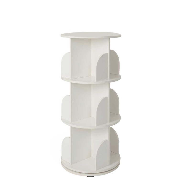کتابخانه سه طبقه با قابلیت گردان 360 درجه و دارای 4 فضای متفاوت در هر طبقه می باشد جنس این کتابخانه از پی وی سی سفید رنگ می باشد و بسیار مستحکم و سبک بوده و از قابلیت تحمل وزن بالایی برخوردار است و به صورت یک طبقه دوطبقه سه طبقه و ... تولید می گردد.