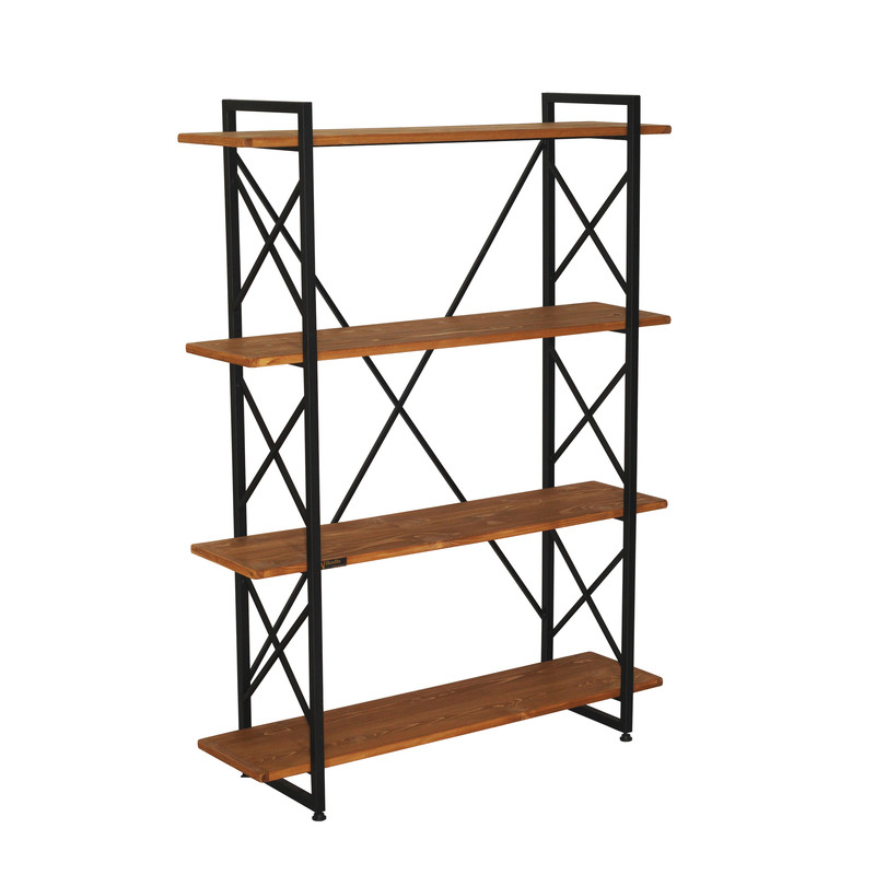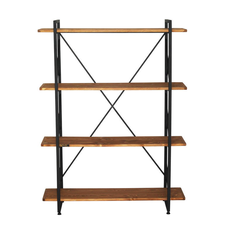 طبقات چوب کاج طبیعی روس وارداتی و فریم از جنس فلز رنگ کوره ای مشکی مات ضد خش و بسیار با کیفیت برای فریم فلزی پوشش رنگ قهوه ای مات خارجی مخصوص چوب (موج نما، آب گریز، گیاهی و با حفظ بوی مطبوع چوب) بر روی صفحات چوبی جهت ثبات بیشتر محصول دارای پایه های پیچی قابل تنظیم می باشد. در لبه های طبقات جهت افزایش دوام، زوارهای چوبی اجرا شده است. فاصله بین طبقات حدود ۴۰ سانتیمتر و مناسب قرار گیری دکور و کتاب تحمل وزن بالا توسط صفحات چوبی نسبت به ورق های MDF محصول بدون نیاز به مونتاژ و کاملا اماده استفاده ارسال می شود.