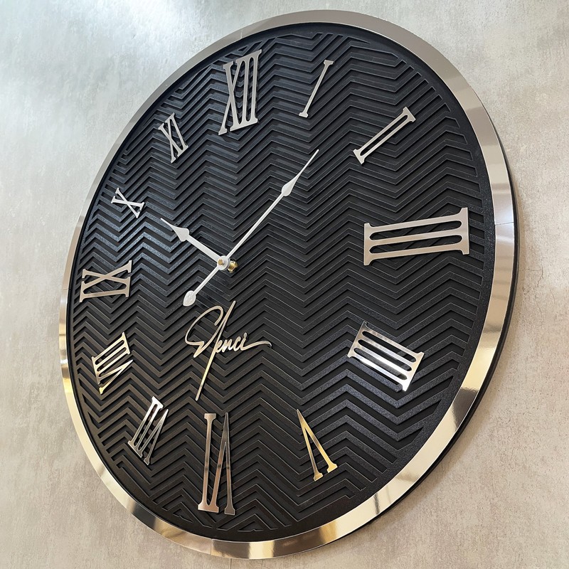 ساعت دیواری جدید بافتی جالب در دل خود دارد. بدنه این ساعت دیواری از جنس چوب ام دی اف ضخیم به رنگ طوسی مات با لایه ای از یک ورق ام دی اف مشکی ساخته شده که اعداد و فریم از جنس آینه های مولتی استایل براق دور تا دور ساعت را احاطه کرده است. براقیت آینه روی زمینه ای مات و تیره، نمای جالبی به ساعت بخشیده است . موتور ساعت دیواری Mountain ساخت کمپانی معتبر یانگ تاون تایوان بوده که بادوام و کم مصرف است. این محصول توسط برند النسی که در زمینه اکسسوری دکوراتیو متخصص است، طراحی و تولید شده است. جنس قاب: MDF نحوه نمایش: عقربهای منبع انرژی: باتری نمایش زمان: رومی مشخصات-ابعاد: 600x600x25 میلیمتر مشخصات-وزن: 1.35 کیلوگرم مشخصات-قطر صفحه: 60 سانتیمتر مشخصات-جنس قاب: MDF مشخصات-نحوه نمایش: عقربهای مشخصات-منبع انرژی: باتری مشخصات-نمایش زمان: رومی