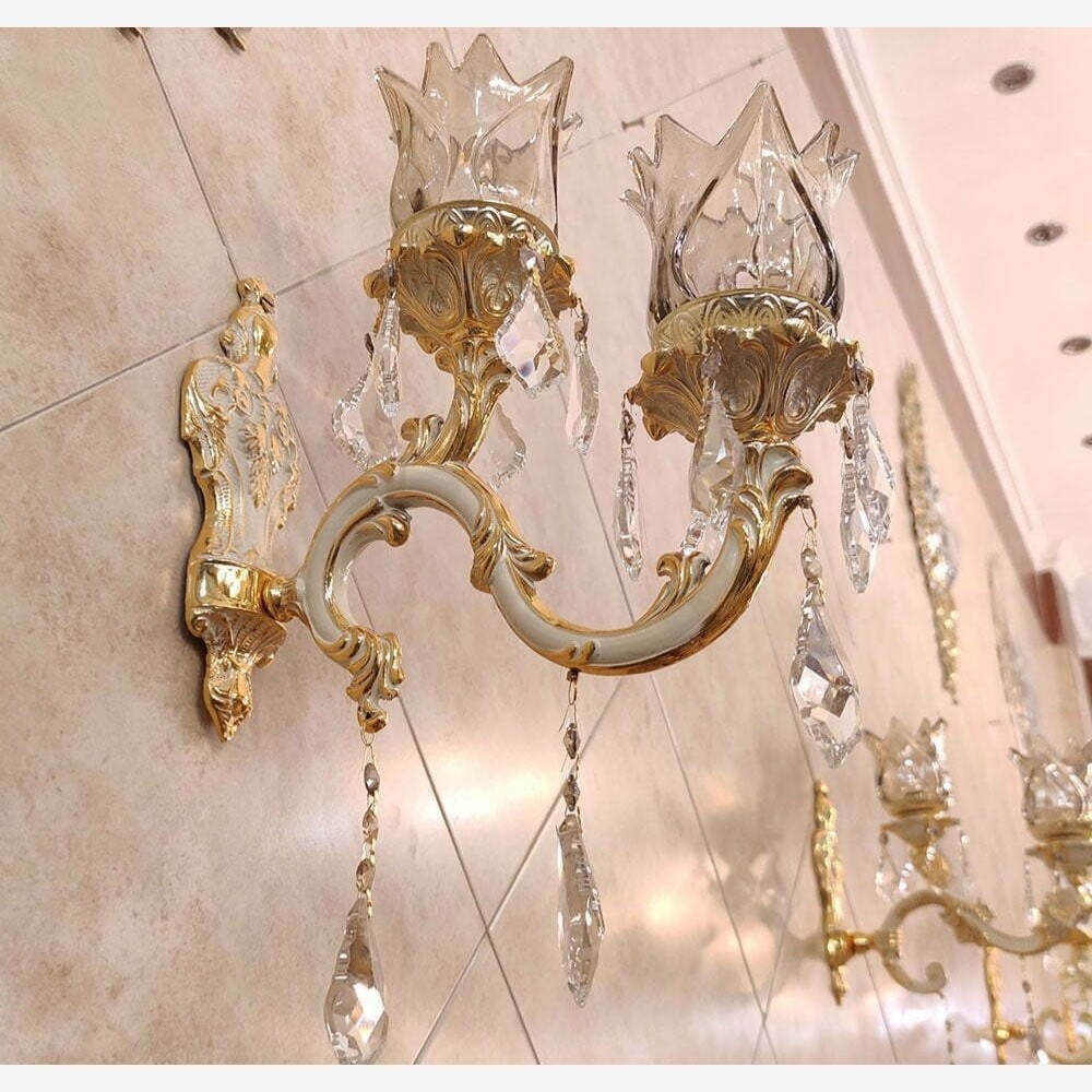 لوستر دیواری برنز شاخه ایتالیا کرم فرانسه لاله کریستال شب خواب آباژور چراغ خواب شبخواب برنزی دو شعله خانمان مدل 329410