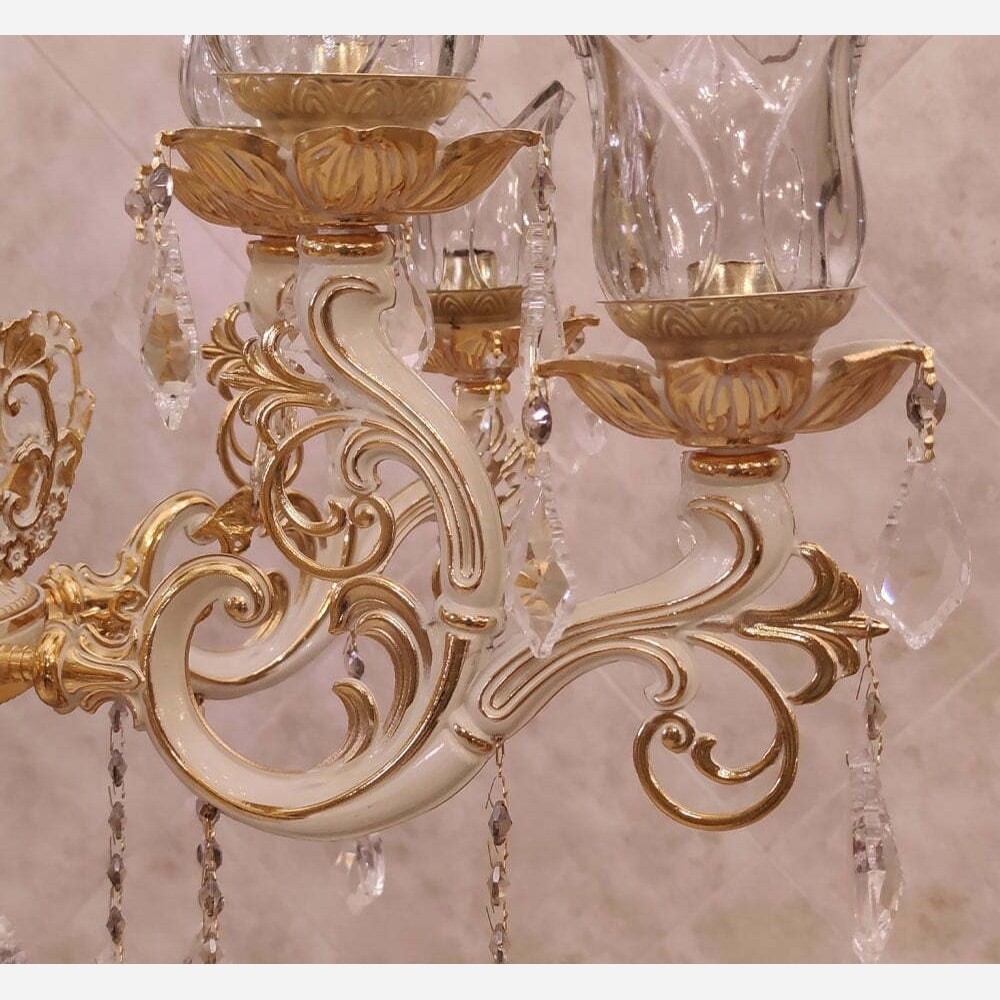 لوستر برنز اصل با ضمانت 10 ساله 12 شعله کرم فرانسه بامشاد لوستر جدید برنزی خانمان مدل 352624