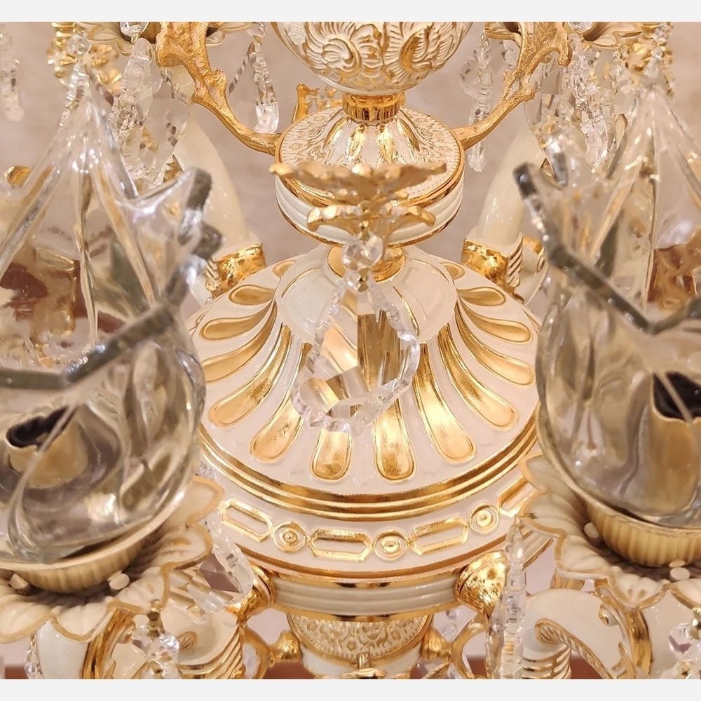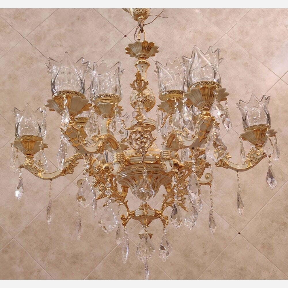 لوستر برنز اصل ضمانت 10 ساله کرم فرانسه 12 شعله گل رز کرم طلا لوستر جدید برنزی خانمان مدل 352629