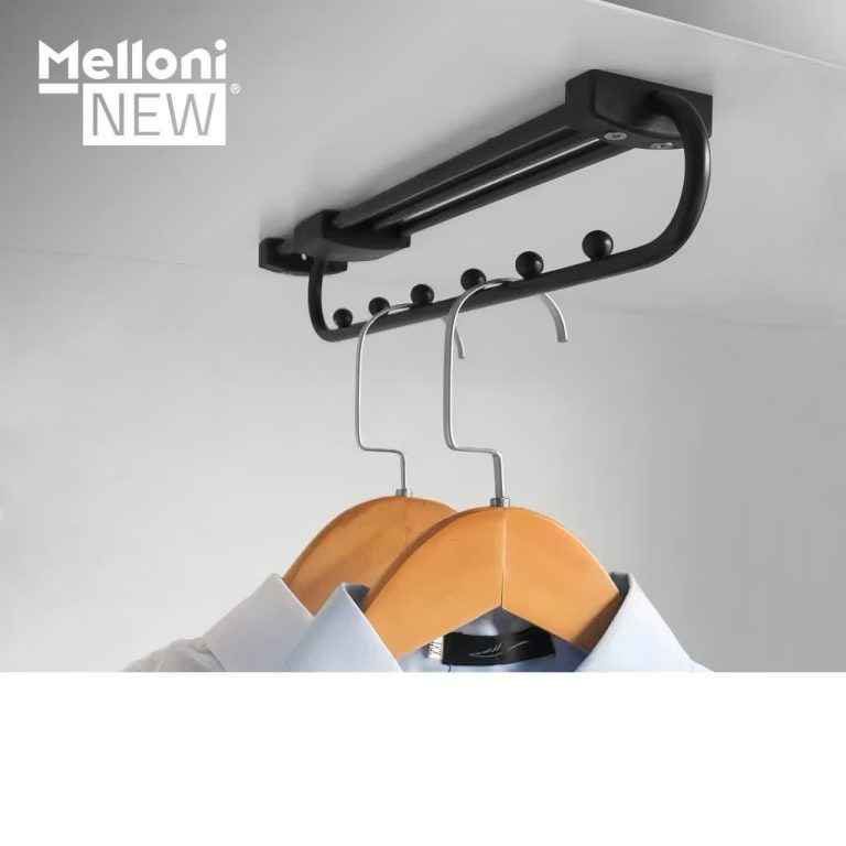 رگال کشویی ملونی به دلیل طراحی منحصر به فرد و خاصی که دارد، امکان دسترسی راحت به لباس های آویز داخل کمد را فراهم میکند. مکانیسم ریلی رگال لباس داخل کمد ملونی به شما کمک می کند که در زمان انتخاب لباس مدنظر، با بیرون کشیدن بدنه رگال از داخل کمد دید کافی از تمام لباس ها داشته باشید و به راحتی بتوانید لباس دلخواه تان را انتخاب کنید. بدنه ی رگال کشویی ملونی از فلز آهن پوشیده شده با رنگ الکترو مشکی و بسیار مقاوم است که به میزان 10 کیلو گرم تحمل وزن دارد. جنس نگهدارنده ها نیز از پلاستیک فشرده و نشکن است که بدنه ی رگال را به خوبی نگه داشته. این رگال لباس داخل کمد در 5 سایز موجود هست که در این محصول سایز 28 سانتی رو قرار دادیم. نصب رگال کشویی 8048 ملونی بسیار آسان است. شما می توانید به کمک 4 پیچ این رگال داخل کمد دیواری را به راحتی نصب کنید.