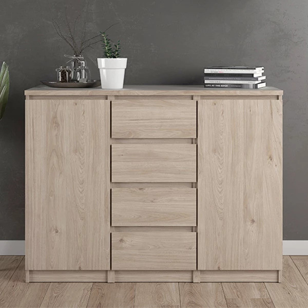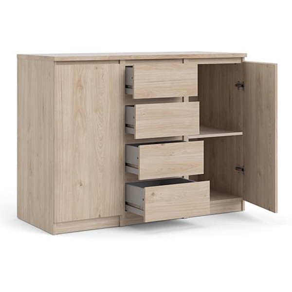 کنسول مدل 2200 جنس روکش از ملامینه میباشد و دارای دو درب با لولای با کیفیت و دارای چهار کشو با ریل ساچمه ای با کیفیت و این کالا از استحکام و مقاومت بالایی برخوردار است و در رنگ بندی های زیبا و شکیل میباشد.