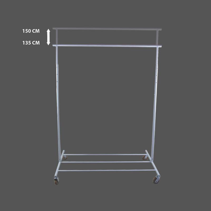 رگال چرخدار با قابلیت تنظیم ارتفاع شرکت تیرداد برای مرتب و منظم نگاه داشتن لباسها وسیله ای ایده آل است. با توجه به چرخ های روان نصب شده ، امکان جابجایی حتی با آویزان بودن لباسها ممکن است. و با توجه به اینکه ارتفاع این رگال قابل تنظیم است و با استفاده از گیره های اضافی برای آویزان کردن هر نوع وسیله ای قابل استفاده در تمامی محیط ها است. این رگال با فلز مستحکم و سبک ساخته شده و با رنگ پودری کوره ای الکترو پوشش یافته است و برای حرکت روان و 360 درجه به چهار چرخ چوبی مجهز شده است و برای استفاده آسان در هر مکانی قابلیت تنظیم ارتفاع دارد که بین 135 تا 150 سانتی متر متغیر است.