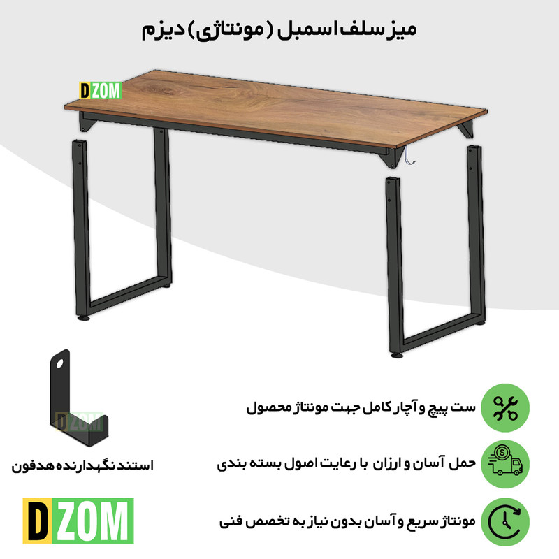 میز ت DZom مدل مونتاژی TLD_asm_150×60_LIGHT محصولی مونتاژی، سبک، شیک و در عین حال جذاب و کارآمد از سری تولیدات میباشد. این محصول بصورت سلف اسمبل (مونتاژی) تولید شده است. این میز حمل و نقل ان و هزینه حمل مقرون به صرفه ای دارد. مشتری گرامی توجه نمایید محصولات برند (شماره ثبت 414013 اداره ثبت علائم تجاری) با کیفیت و بسته بندی اصلی تنها توسط فروشنده رسمی در دیجیکالا عرضه میشود، لطفاً از خرید کالای تقلبی از سایر فروشندگان خودداری فرمایید. این میز از پایه های فلزی با مقطع 50x30 میلیمتر و رنگ رویه الکترواستاتیک با ماندگاری و دوام بالا ساخته شده است. همچنین پایه های پیچی، قابلیت تنظیم نسبت به سطح زمین را دارد تا بهترین تراز جهت جلوگیری از تکان خوردن را ایجاد نماید. صفحه میز از جنس MDF درجه یک برجسته طرح چوب به رنگ قهوه ای روشن می باشد. این محصول با طول 150cm، عرض 60cm و ارتفاع 75cm عرضه می شود. به این نکته توجه شود که تنوع رنگ انتخابی کالا تنها مربوط به رنگ پایه های فلزی میباشد.