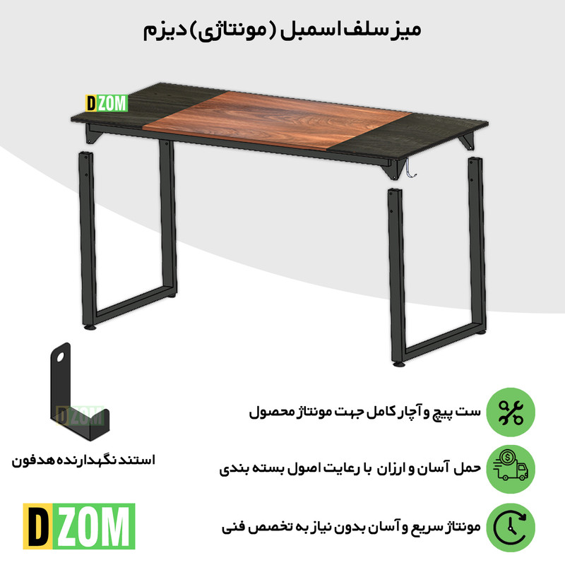 میز ت DZom مدل مونتاژی TLD_asm_150×60_Tri_BABRN محصولی مونتاژی، سبک، شیک و در عین حال جذاب و کارآمد از سری تولیدات میباشد. این محصول بصورت سلف اسمبل (مونتاژی) تولید شده است. این میز حمل و نقل ان و هزینه حمل مقرون به صرفه ای دارد. مشتری گرامی توجه نمایید محصولات برند (شماره ثبت 414013 اداره ثبت علائم تجاری) با کیفیت و بسته بندی اصلی تنها توسط فروشنده رسمی در دیجیکالا عرضه میشود، لطفاً از خرید کالای تقلبی از سایر فروشندگان خودداری فرمایید. این میز از پایه های فلزی با مقطع 50x30 میلیمتر و رنگ رویه الکترواستاتیک با ماندگاری و دوام بالا ساخته شده است. همچنین پایه های پیچی، قابلیت تنظیم نسبت به سطح زمین را دارد تا بهترین تراز جهت جلوگیری از تکان خوردن را ایجاد نماید. صفحه میز از جنس MDF درجه یک برجسته طرح چوب با ترکیبی از دو رنگ مشکی و قهوه ای است. این محصول با طول 150cm، عرض 60cm و ارتفاع 75cm عرضه میشود. به این نکته توجه شود که تنوع رنگ انتخابی کالا تنها مربوط به رنگ پایه های فلزی است.