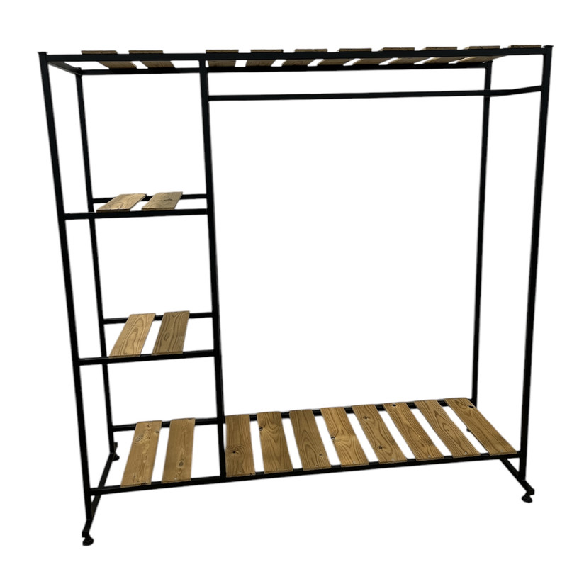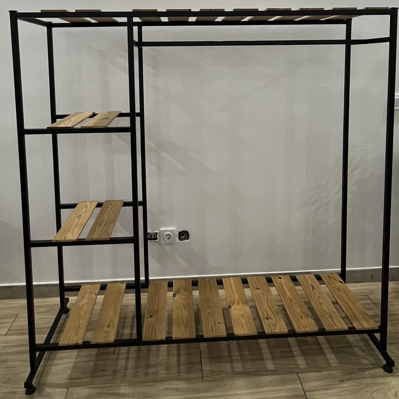 جا لباسی 4 طبقه دراکو دیزاین با بدنه تمام فلز آلیاژی با رنگ مشکی مات ضد خش ساخته شده است جنس صفحه این کار از چوب روس، ترموود ضد آب می باشد فرآیند اتصال این محصول با جوش حرفه ای آرگون TIG انجام شده است و دارای استحکام بسیار بالایی است و به هیچ عن با بست های پلاستیکی اسمبل نشده است