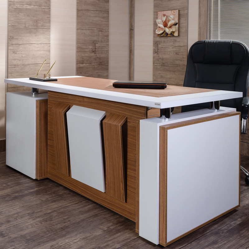 میز ت مدل M904-MDF در فضاهای کاری و دفاتر استفاده میشود و یکی از وسایلی است که مدیران بیش از یک سوم از ساعات روز با آن سر و کار دارند. در هر شرکتی مدیر جایگاه مخصوصی دارد به همین علت انتخاب میز ت اهمیت بسیار زیادی دارد.میز های تی به نسبت میز های کارمندی بزرگتر هستند و فضای کافی برای قرار دادن کامپیوتر، لوگوی شرکت و … دارد تا مدیر به راحتی به کارهایش رسیدگی کند.میز ت، میز قدرت شما می باشد و می توانید در پشت آن قدرت خود را به نمایش بگذارید. اولین چیزی که به چشم افراد می آید یک دکوراسیون خوب و یک میز ت عالی می باشد که می تواند به سازمان شما اعتبار دهد و شما را در ذهن افراد ماندگار کند.میز ت مدل M904-MDF ساخته شده از مواد اولیه مرغوب و مقاوم جهت استفاده در محیط کار میباشد. این میز زیبا می تواند جلوه خاصی به محیط کار شما بدهد.جنس این محصول ام دی اف می باشد