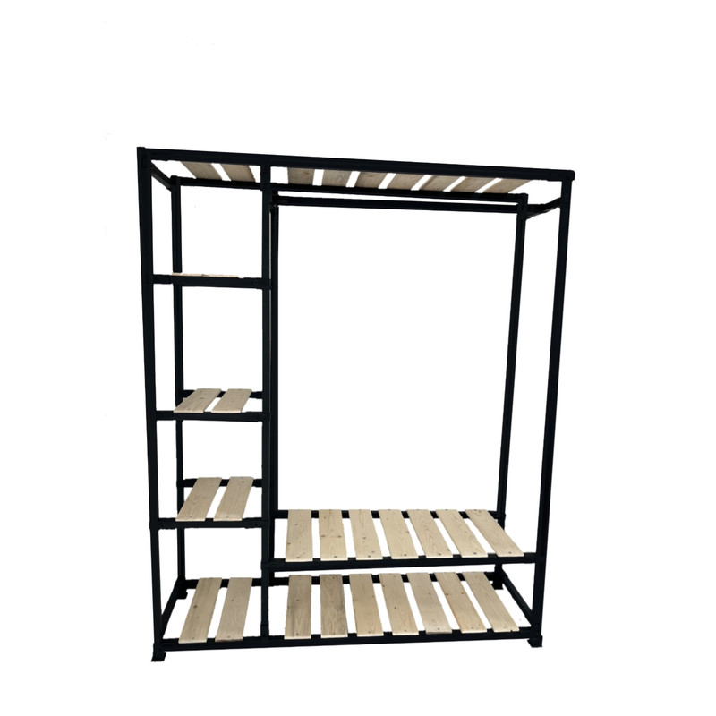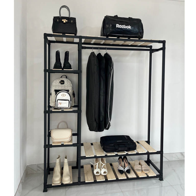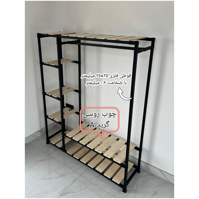 رگال لباس جاکفشی دار مدل MJ404 از قوطی آهن ۲۵×۲۵ میلیمتر با ضخامت ۰.۶ میلیمتر و با رنگ کورهای ساخته شده که در هر طبقه آن از چوب روسی گرید A با ضخامت ۹ میلیمتر که بسیار محکم میباشد استفاده شده است. اتصالات بسیار قوی آن با رنگ کورهای مشکی میباشد و قابلیت تغییر ارتفاع تمامی طبقات رگال را با توجه به نیاز شما دارد. همراه این رگال آچار آلن و کاتالوگ نصب نیز برای شما ال میگردد.