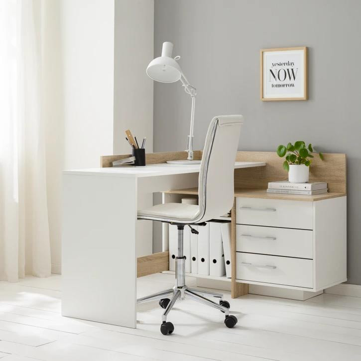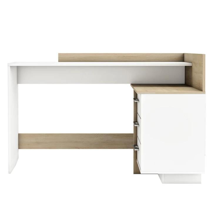 لطفا دقت فرمایید: دکوراسیون داخلی ، طراح و تولید کننده اصلی این محصول با نام تجاری است. این محصول دارای لیبل برجسته می باشد. لطفا قبل از خرید نام فروشنده را بررسی فرمایید. این میز دارای 3کشو و قفسه می باشد. جنس محصول ملامینه می باشد. رنگ چوب در این محصول ثابت بوده و شما می توانید رنگ سفید بدنه را تغییر دهید. با انتخاب رنگ مناسب، میز مدل M916 خود را سفارش دهید