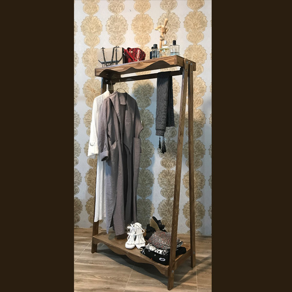 رگال لباس مدل nk001، جدیدترین رگال لباس تولید شده می باشد که حاصل تلفیق کارایی و زیبایی می باشد ، در این رگال به جای استفاده از چوب های میله ای از تخته ی چوبی و طبیعی یک تکه استفاده شده که باعث میشه به راحتی کیف و کفش حتی شمع و کتاب و فیگور و ... روی اون بدون هیچگونه مشکلی قرار بدید ، این تخته های یک تکه استقامت کار و در عین حال زیبایی و کارایی رو ایجاد کرده ، لازم تاکید کنیم که چوب استفاده شده در این رگال کاملا طبیعی می باشد که با سیلر ، کیلر و پلی استر رنگ شده و تحت هیچ شرایطی mdf یا لترون یا چوب خام نمی باشد ، این رگال با استفاده از پیچ و مهره به راحتی باز و بسته می شود و شما میتوانید بدون هیچ مشکلی بارها اقدام به باز و بست رگال کنید.
