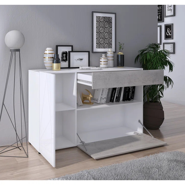 کنسول مدل 5458 جنس روکش از ملامینه درجه یک میباشد و درب ها دارای لولای با کیفیت میباشند و کشو دارای ریل ساچمه ای با کیفیت میباشند و این کالا از استحکام و مقاومت بالایی برخوردار است و در رنگ بندی های زیبا و شکیل میباشد.