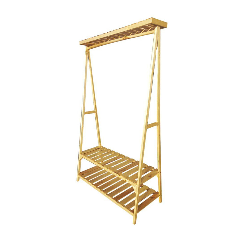 رگال لباس چوبی مدل مثلثی دوطبقه تاجدار در ابعاد175x100x45 مناسب برای استفاده در منازل و محل کار و مزون لباس رگال به صورت بازشو ال می شودو مشتری با توجه به علامت گذاری هایی که میشود رگال را با پیچ و چسب چوبی که در بسته بندی قرار میدهیم سرهم میکند