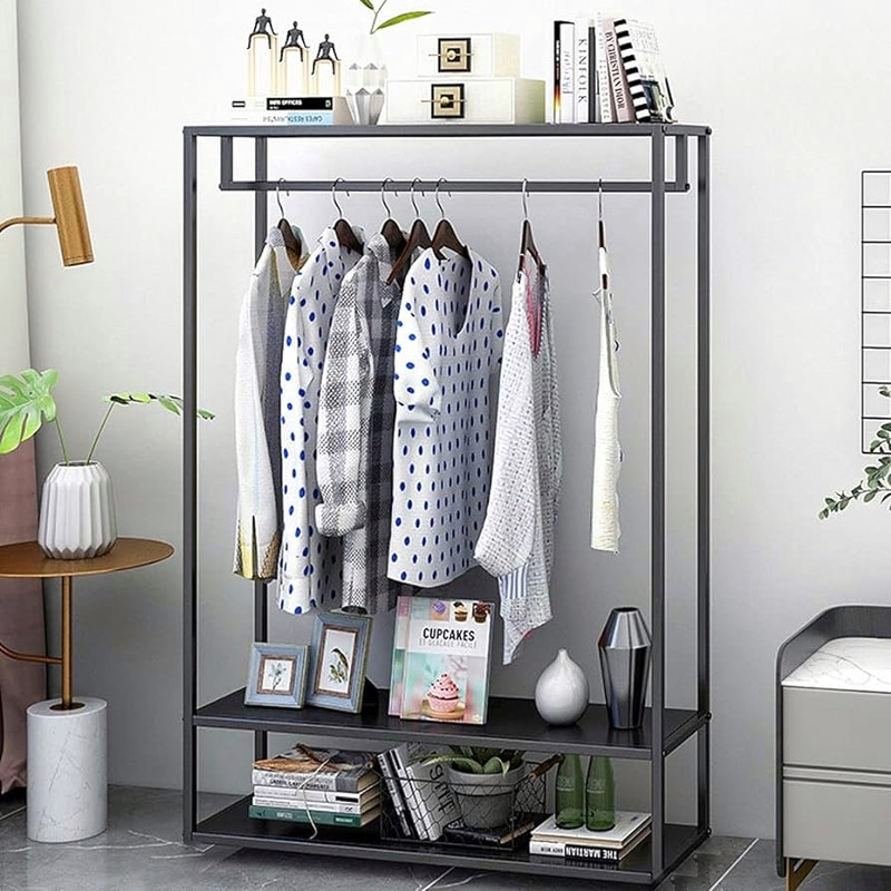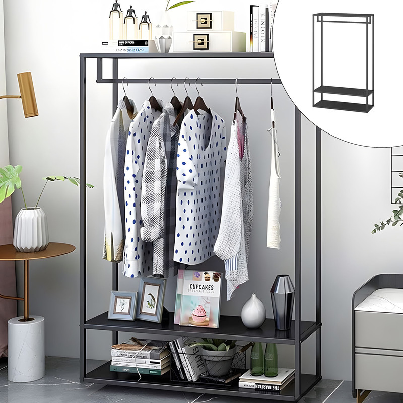 رگال لباس مدل طبقه دار فلزی با استفاده از طراحی خاص و بدون یراق باعث شده تا مشکل جابجایی رگال لباس خود را نداشته باشید. نگرانی بعدیای که در خرید رگال وجود دارد استحکام و تحمل وزن سنگین لباس است اما این رگال با استفاده از فلز مناسب و طراحی دقیق باعث میشود که سنگینترین لباسها به راحتی بر روی آن قرار بگیرند. استفاده از 3 طبقه مجزا mdf برای اع وسایل مثل کفش، کتاب، کیف و.. باعث شده تا بتوان از این رگال به عن یک کمد همه کاره استفاده کرد و هیچ نگرانی برای مدیریت کردن یا مرتب کردن وسایل وجود نداشته باشد. پروفیل فلزی این رگال و رنگ خاص مشکی مات آن جلوهای مینیمال و مدرن به فضای خانه و یا محل کار شما میبخشد تا هیچوقت نگران طراحی داخلی نباشید. این رگال قابل استفاده در اتاق، خانه، مزون و... میباشد. این رگال برای افی که می خواهند از فضای کمی که دارند بهترین استفاده را بکنند و زیبایی هم برای آن ها اهمیت دارد مناسب است.