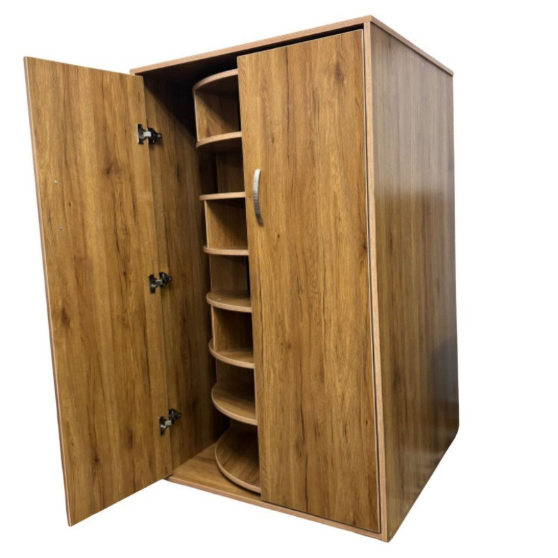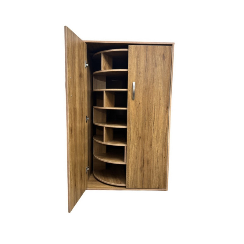 جا کفشی گردان با استفاده از بهترین متریال و یراق موجود در بازار ساخته شده و مناسب منزل و ادارات و اماکن خاص میباشد . این جا کفشی با قابلیت گردش ۳۶۰درجه دسترسی را سریع و ان میکند همچنین دارای هفت طبقه که دو طبقه برای کفش های بزرگ و چهار طبقه برای کفش های متوسط و کوچک و یک طبقه برای کفش هایی با ارتفاع بلند تر مانند بوت و مشابه آن فراهم گردیده که آن را کاربردی کرده است . از جنس مرغوب ام دی اف در این جاکفشی به ل ساختار و ابعاد استفاده شده که باعث استحکام بیشتر شده است .