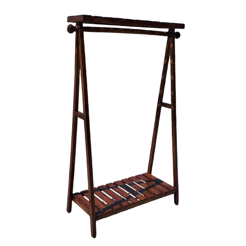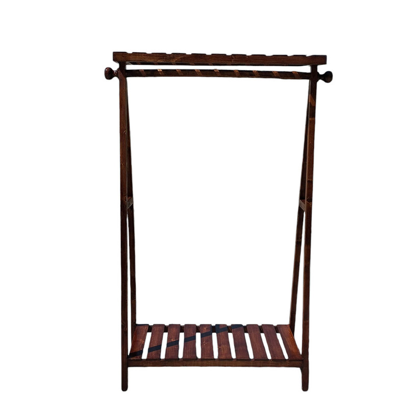 رگال لباس چوبی مدل یک طبقه تاجدار گوشواره دار در ابعاد ارتفاع 140 و طول 85 و عمق 45 سانتی متر می باشد قابل سفارش در رنگ های قهوه ای تیره و قهوه ای روشن و کرم جلا می باشد مناسب برای لباس های نوجوانان و لباس های اقایان و همچنین مناسب برای لباس های کوتاه زنانه نیز می باشد