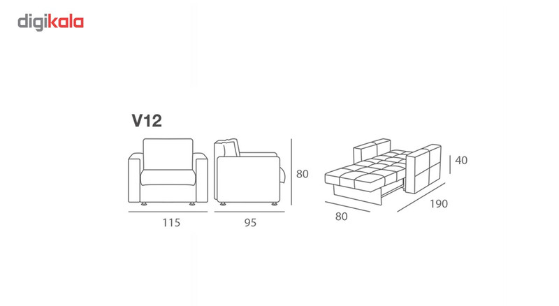 مبل تختخوابشو یک نفره V12 دارای عرض خواب 80 و فضای باکس بزرگ و نشیمن کاملا طبی می باشد. طراحی مبل به شکلی می باشد که به راحتی و با کشیدن کف مبل به جلو تبدیل به تخت می شود.این محصول برای اولین با در ایران طراحی و تولید شده است و تحت قانون مالکیت های معنوی قرار دارد. دسته های این مبل به صورت کشویی می باشد و به راحتی هنگام جا به جایی قابل جدا شدن می باشد. در زیر تشک نشیمن فضای باکس بزرگی وجود دارد که به عن کمد جهت قراردادن وسایل خواب و ... می باشد. یکی از بزرگترین و متنوع ترین تولید کننده مبلمان مدرن و تختخواب شو با سابقه 16 ساله می باشد. کلاف مبل فلز سبک صنعتی به جای چوب، بسیار مقاوم و در عین حال سبک می باشد. بیش از 60 درصد تولیدات در این کارخانه توسط ماشین آلات تمام اتوماتیک و مدرن اروپایی تولید می شود رنگ کوره ای الکترو کلاف محصولات باعث یکختی رنگ و عدم زنگ زدگی محصولات در شرایط جوی نامناسب می باشد. تشک کف نشیمن طبی با دانسیته بالا می باشد که مبل را برای سالهای سال به حالت اولیه نگه میدارد.