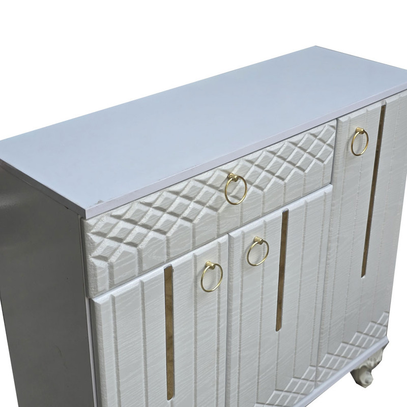 جا کفشی مدل 2024 طرح جدید جا کفشی از جنس mdf با لایه های آینه ای میباشد. این جا کفشی دارای ابعادی 32x90x83 سانتی متر بوده و دارای 3 درب و یک کشوی مخصوص واکس و سایر لازم کوچک میباشد.جاکفشی آینه ای مدرن و بروز بوده و میتواند تا 11 جفت کفش در ابعادمختلف را در خود جای دهد.
