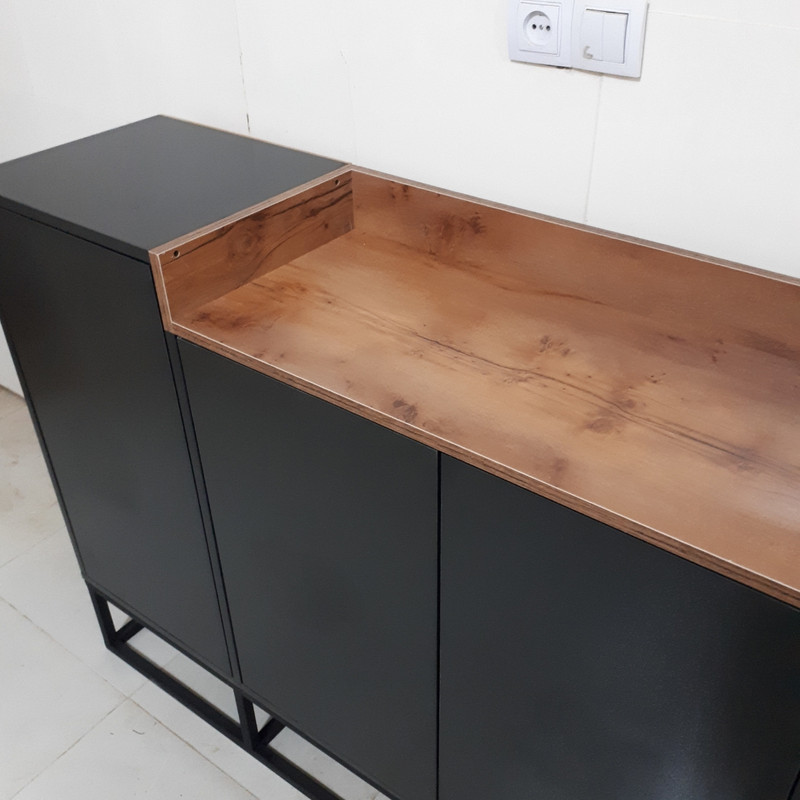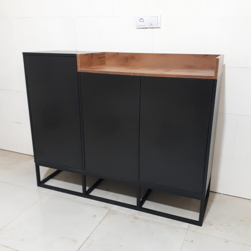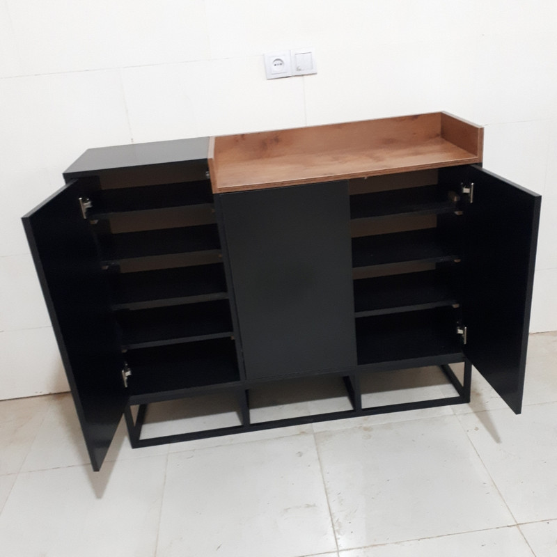 این مدل جاکفشی ساخت تولیدی میباشد و با بهترین یراق آلات ساخته شده است بدنه این مدل ملامینه شرکت پویا است و لولا های آرام بند خارجی و درب های مگنت دار این مدل را متمایز میکند. طرح چوب قسمت سقف و فضای تزیینی این مدل همراه و پایه فلزی(شاسی فلزی) با رنگ مشکی این مدل را نسبت به مدل های دیگر ما برتری میبخشد.