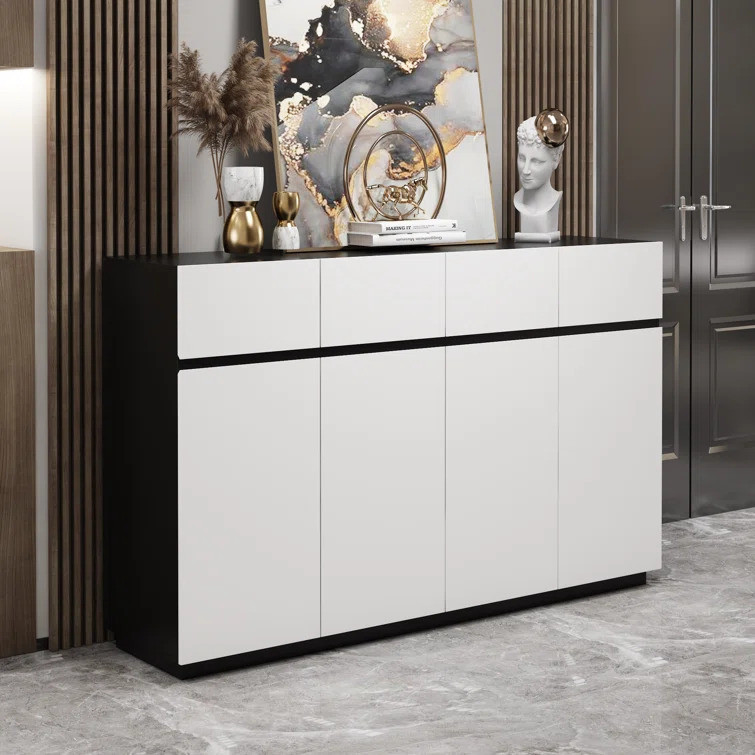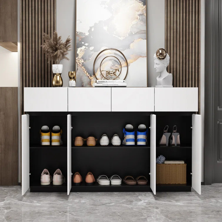 جاکفشی مدل 5517 جنس روکش از ملامینه درجه یک میباشد و دارای چهار کشو و چهار درب و درب ها دارای لولای آرام بند با کیفیت میباشند و کشو ها دارای ریل ساچمه ای با کیفیت میباشند و کشو ها دارای ریل ساچمه ای با کیفیت میباشند