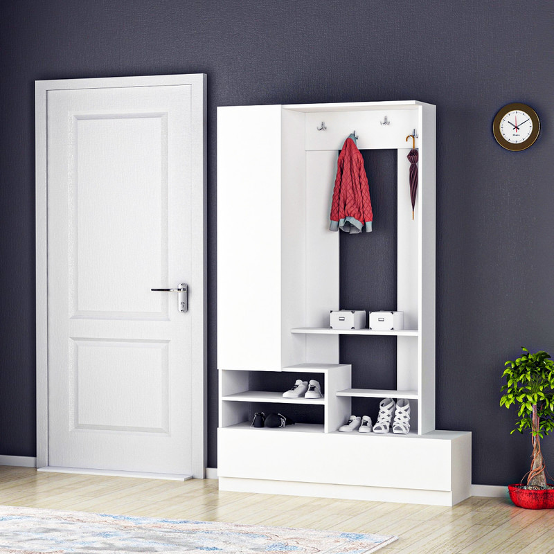 جاکفشی رخت آویز مدل DL997M از آنجا که بیرون از منزل همواره آلودگی هایی غیر قابل مشاهده بوده و هست، کیف و لباس و کفشها به طور ناخودآگاه با زمین و درب و دیوار و ... در تماس هستند، این موارد میکروارگانیسمهای زیادی با خود همراه دارند، مطالعات نشان میدهد که حتی در سطوح خشک نیز میکروبها مدتهای زیادی زنده باقی میمانند. بنابراین کیف و کفش و لباس های بیرونی نباید به هیچ وجه مستقیم به محل استراحت سرایت کنند. در این راستا یک سازه کمدی شامل جاکفشی و رخت آویز و طبقات زیاد با نام DL997 ساخته شده که جنس آن ام دی اف است و برای خرید جنس لترون و ابعاد دیگر میتوانید دیگر محصولات دلفان دکور را ببینید ابعاد این کالا (عرض 110 و ارتفاع 182 و عمق 37 سانتیمتر) است که بسیار شیک و جادار می تواند در دروازه ورودی آپارتمان فضای مناسبی برای انواع کیف و کفش و لباسهای شما به وجود آورد. ابعاد و اندازه های دقیق در تصاویر محصول ثبت شده لطفا با دقت بررسی کنید سپس سفارش خود را نهایی کنید. برای آگاهی دقیق از جنس و رنگ های موجود، می توانید چند تصویر آخر کالا را ببینید میز به صورت مونتاژ شده و آماده در بسته بندی م ال میشود. لطفا سولات خود را از طریق پرسش همینجا مطرح کنید در کمترین زمان پاسخ خواهیم داد.