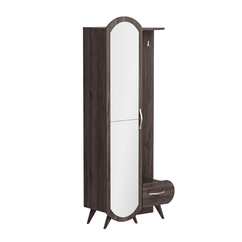 جاکفشی + رخت آویز + آینه قدی مدل DLF76M ساخته شده از جنس ام دی اف MDF، باید بدانیم که بیرون از منزل همواره آلودگی هایی غیر قابل مشاهده بوده و هست. کیف و لباس و کفشها به طور ناخودآگاه با زمین و درب و دیوار و ... در تماس هستند، این موارد میکروارگانیسمهای زیادی با خود همراه دارند، مطالعات نشان میدهد که حتی در سطوح خشک نیز میکروبها مدتهای زیادی زنده باقی میمانند. بنابراین کیف و کفش و لباس های بیرونی نباید به هیچ وجه مستقیم به محل استراحت سرایت کنند. در این راستا یک سازه کمدی شامل جاکفشی + رخت آویز + آینه قدی بسیار شیک و جذاب طراحی کرده ایم که می تواند در دروازه ورودی آپارتمان فضای مناسبی برای کیف و کفش و لباسهای شما به وجود آورد. جاکفشی رخت آویز مدل DLF76M از جنس ام دی اف MDF درجه یک ساخته شده لطفا برای انتخاب رنگ دلخواه نمونه رنگ در تصاویر را بررسی کنید.