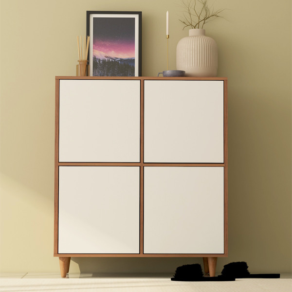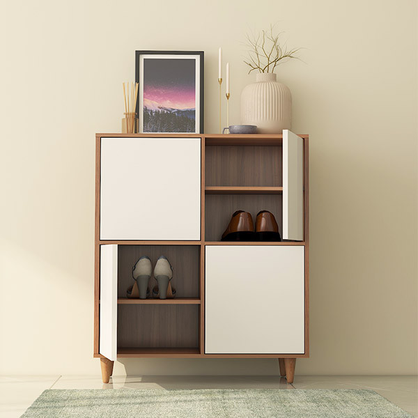 جاکفشی سفید قهوه ای ام دی اف با روکش ضدخش مدل S.R002 در سبک مینیمال در ابعاد 35x100x80 طراحی شده است که دارای 4 درب باز شو با دستگیره تاچ و همراه با تقسیم بندی طبقات داخلی جهت انواع کفش می باشد. کلیه دستگیره های طراحی شده در محصولات فرنیشیوم به گونه ای است که هیچگونه پیچ و دستگیره جداگانه ای در آن به کار نرفته است. عرض این جا کفشی 70 سانتی متر و ظرفیت آن 8 جفت کفش بزرگسال و 2 جفت کفش کودک است. در طراحی جاکفشی سفید قهوه ای ام دی اف با روکش ضدخش مدل S.R002 از ابعاد متناسب با استاندارد نومی استفاده شده و با توجه به مدرن و مینیمال بودن این محصول با انواع سبک های مختلف دکوراسیون منازل شما هماهنگ می باشد.