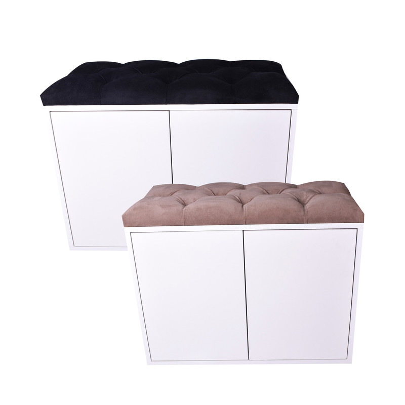 جاکفشی مدل آلما510 طراحی شده برای 9 جفت کفش همراه با نشیمن با رویه کوبی مبلی چستر(لمسه) امکان این را فراهم میکند تا در زمان استفاده از هر گونه کفش از نشیمن این مدل به راحتی استفاده کنید. رنگ چوب بکار رفته در این مدل سفید بوده و برای تمامی تنوع های رنگی ثابت است. از طرفی تنوع متنوع رنگ پارچه مبلی برای این مدل این امکان را فراهم میکند تا با فضای منزل شما به راحتی ست شود!! در این مدل جاکفشی از درب های مگنتی با لولا های آرام بند استفاده شده و پایه های 1/5 سانتی مخفی جلوه زیبایی به این مدل بخشیده است!!