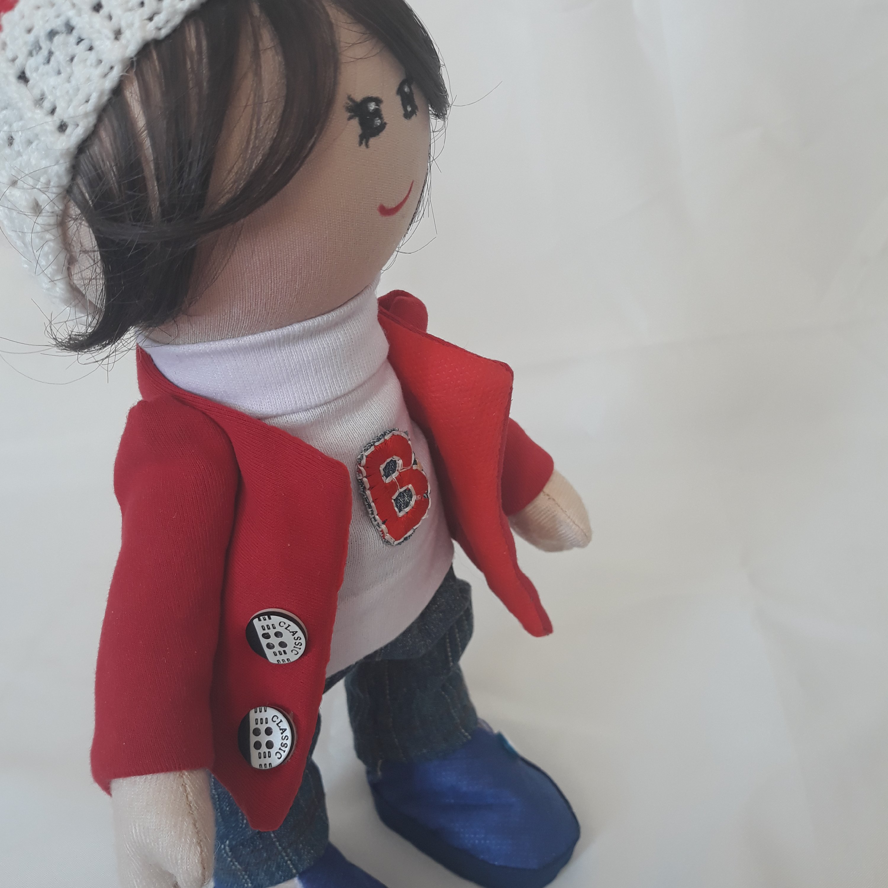 عروسک سر ثابت . دست و پا متحرک . کاملا پارچه ای و نرم و بادوام . مناسب کودکان و نوجوانان . رنگ لباس و کفش عروسک قابل تغییر است بنابه سلیقه ی مشتری در صورت امکان .