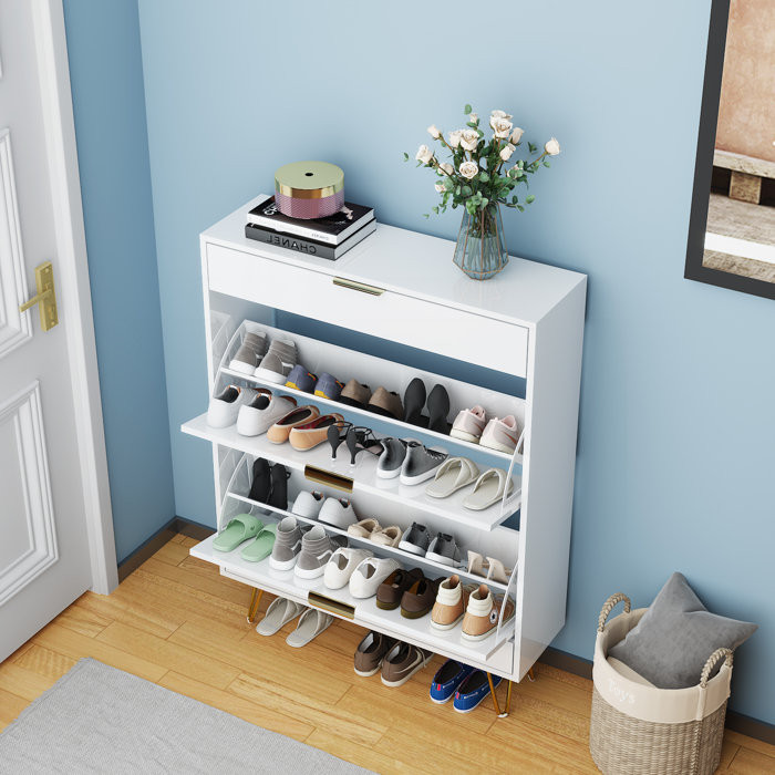 این کابینت نگهداری کفش دقیقا همان چیزی است که شما نیاز دارید! دارای کشوهای تاشو کشویی جادار است، این نظم دهنده کفش به راحتی کفش های شما را پنهان می کند. طراحی صرفه جویی در فضا برای ورودی، اتاق خواب و حمام، عملی و کاربردی. خطوط تمیز و طراحی فوق العاده به این کابینت پیچیدگی ساده ای می بخشد که با دکوراسیون مدرن هماهنگ است. این کابینت جا کفشی با دو درب تاشو به راحتی کفش های شما را پنهان می کند. دارای یک کشو و فضای پلت فرم اضافی است تا بتوانید در ثانیه ای که وارد در می شوید، وسایل خود را مرتب کنید.