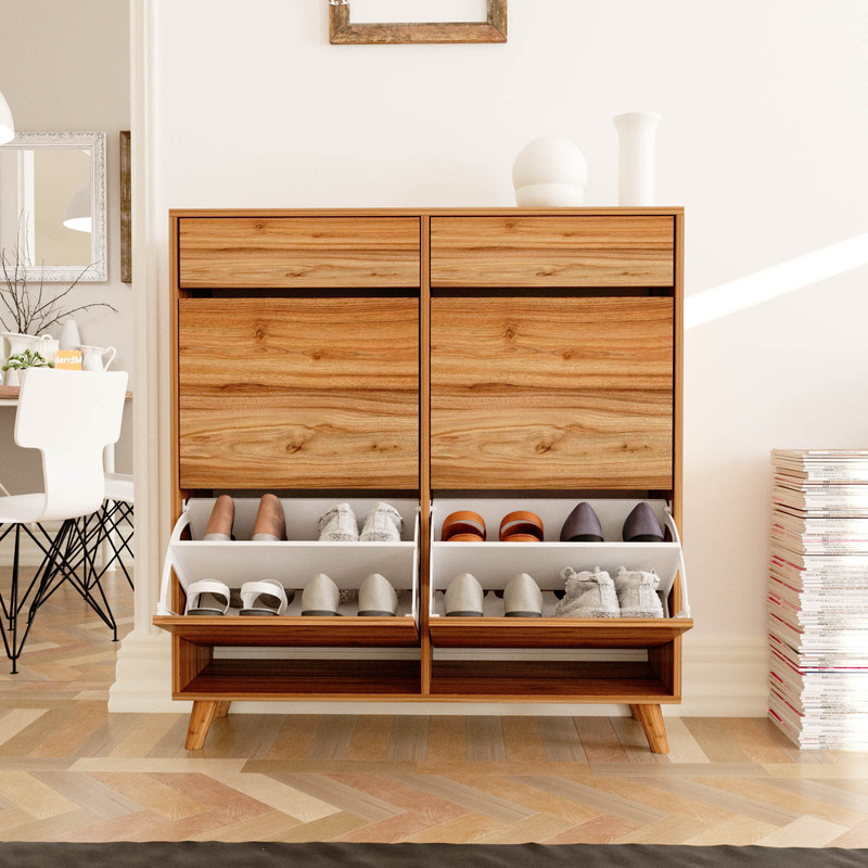جاکفشی داشبوردی دو درب 70 طرح ساخت شرکت چوبجار یکی از کاربردی ترین انواع جاکفشی برای آپارتمان ها و راهروی منزل شماست. این جاکفشی با اشغال فضای حداقلی حداکثر میزان کفش را در خود جای میدهد. ظرفیت این جاکفشی 24 جفت کفش است. یراق بکار رفته در این جاکفشی از بهترین جنس و با بالاترین تکنولوژی های روز تولید و مونتاژ شده است.