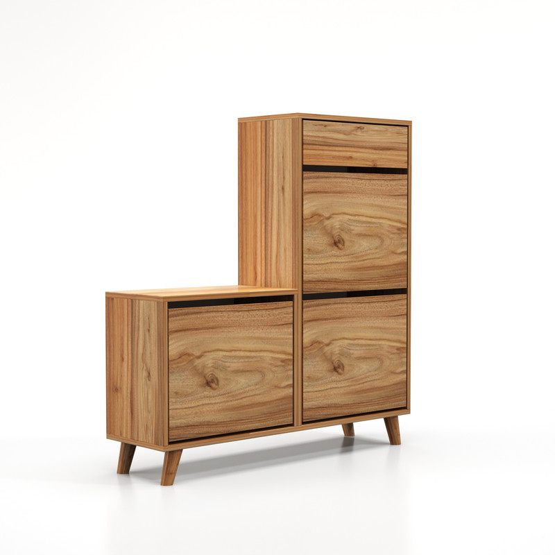 جاکفشی داشبوردی 3 درب نشمین دار طرح ساخت شرکت چوبجار یکی از کاربردی ترین انواع جاکفشی برای آپارتمان ها و راهروی منزل شماست. این جاکفشی با اشغال فضای حداقلی حداکثر میزان کفش را در خود جای میدهد. ظرفیت این جاکفشی 12 جفت کفش است. یراق بکار رفته در این جاکفشی از بهترین جنس و با بالاترین تکنولوژی های روز تولید و مونتاژ شده است.