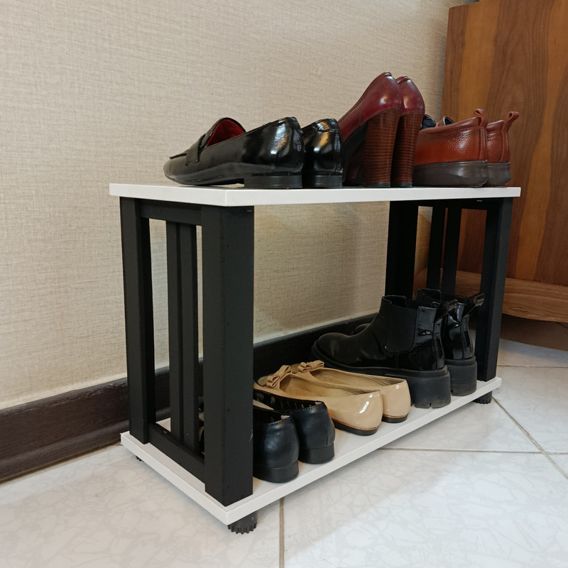 طراحی زیبا، استحکام و سادگی از مزایای این جاکفشی است. این جاکفشی از جنس ملامینه است که لبه های آن پی وی سی شده است. امکان قرار دادن شش جفت کفش در آن وجود دارد. پایه های مشکی این جاکفشی از ام دی اف خام هشت میلیمتری ساخته شده است که با رنگ اکریلیک مشکی رنگ آمیزی شده است. پایه های پلاستیکی کف آن قابلیت تراز کردن جاکفشی را می دهد. این جاکفشی با هشت پیچ به راحتی مونتاژ می شود. لینک فیلم آموزش مونتاژ در بسته بندی قرار دارد.